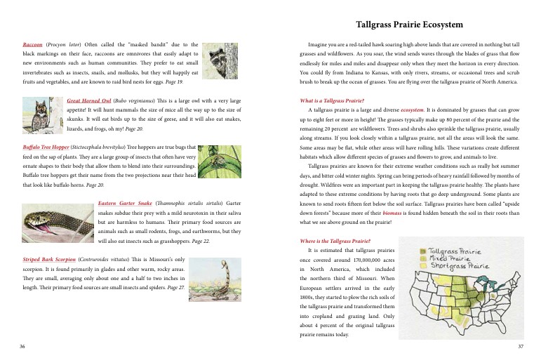 Although the story is whimsical, it is founded on sound information about animals and plants found historically within two ecosystems of Missouri: the Tallgrass Prairie and the Glade. Learn about animal life cycles, habitat, and the web of life through reading the story and using the educational materials at the end of the book.