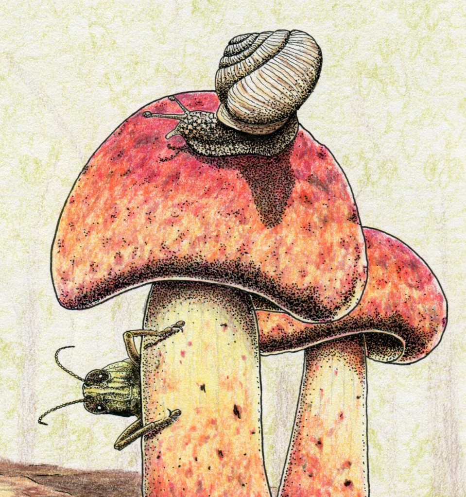 The story is elegantly illustrated using a technique similar to a vintage style of botanical drawing that relies heavily on stippling for shading and detail while preserving light areas. It is then filled in with colored pencils.