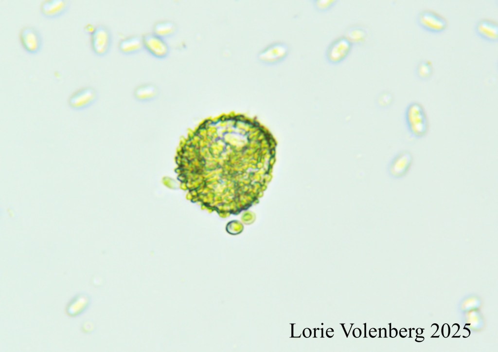 There were a number of soil loving moss species, and one complex thalloid liverwort that was prevalent on exposed, moist soil. The moss species found in more dry-mesic areas were Weissia controversa, Campylium chrysophyllum, Atrichum angustatum, and fun new one for me to see in person, Bruchia flexuosa. Sadly…it was pretty far along, so there are no good photos from in the field, but I did get some spore photos to confirm its identity.