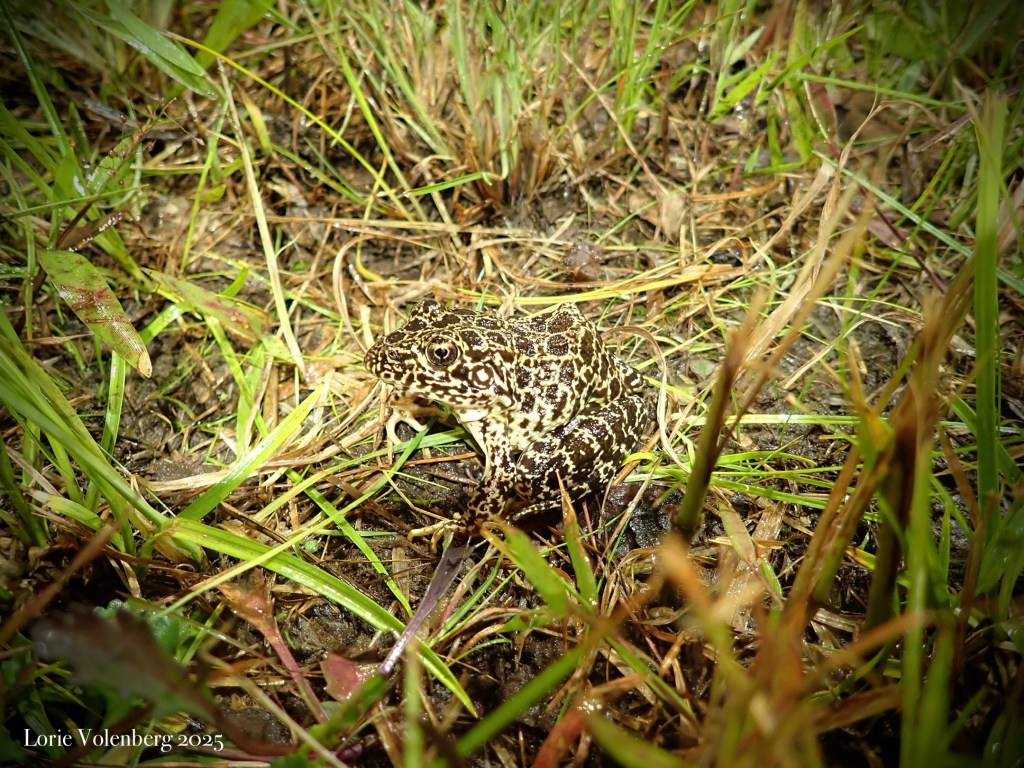 Afterwards, we all enjoyed a potluck dinner with hamburgers grilled on site from a locally resourced family farm. I don’t think it was possible to walk away from the dinner table hungry! Evening festivities included a talk about photography, and then black lights were set up by Eric and Wendy Eaton. Some fun things were found, but perhaps the most exciting creature we saw was the Northern Crawfish Frog, Lithobates areolatus circulosus.