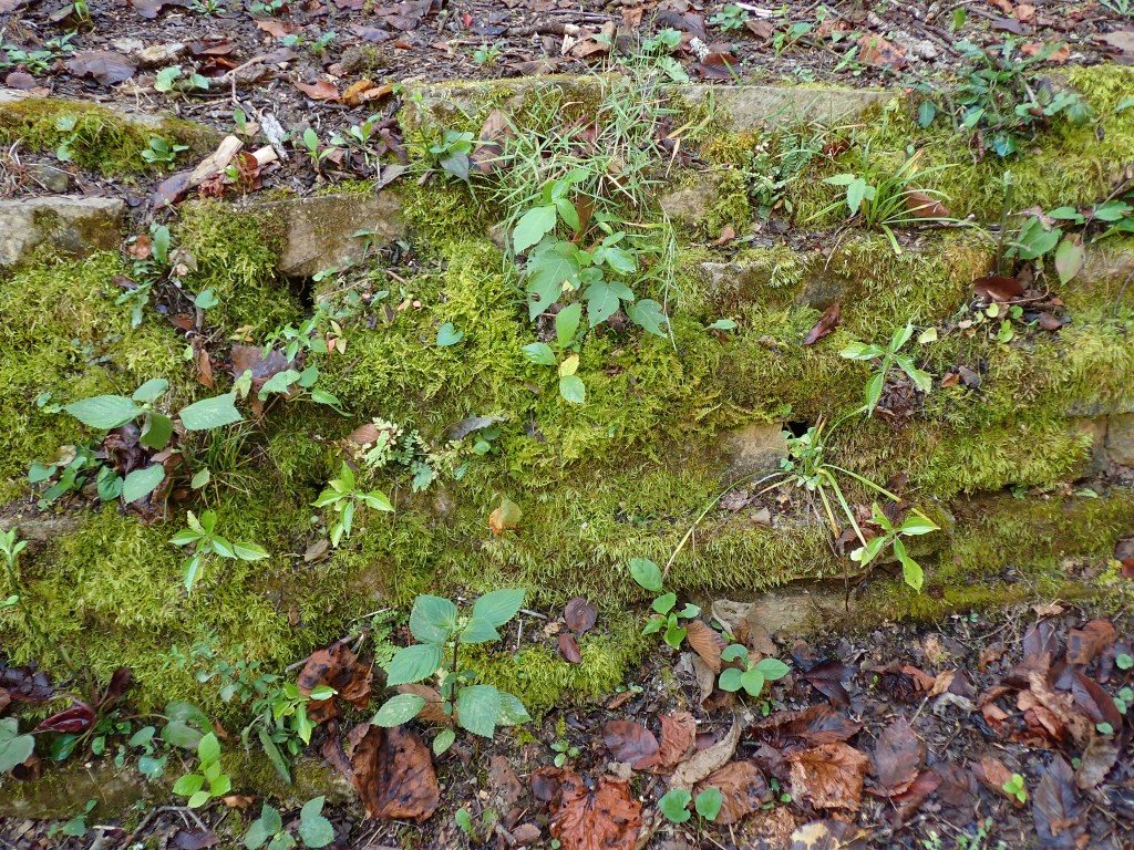 We hiked the Blue Heron trail which is a wide, paved path that meanders along Spring Lake, and eventually leads you up to the actual Onondaga Spring itself. While there was no easy access to the edge of Spring Lake to hunt for bryophytes, at Onondaga Spring there was a retention pond built in 1886 from when it was a millrace. This area afforded lovely views and bryophyte hunting. Surrounding Onondaga Spring were natural limestone walls, and at the opposite end by the path, a rock wall was built that was covered in bryophytes. We decided to start our exploration there.