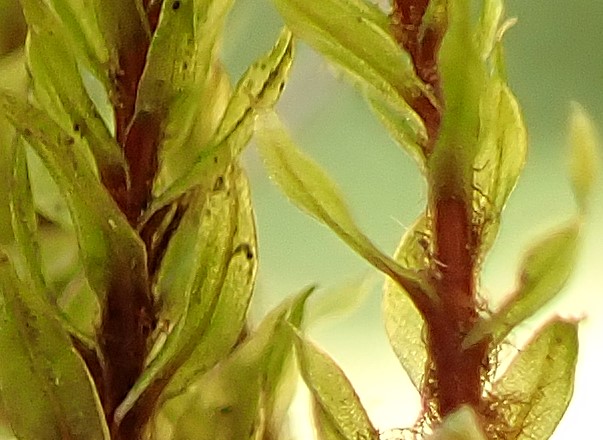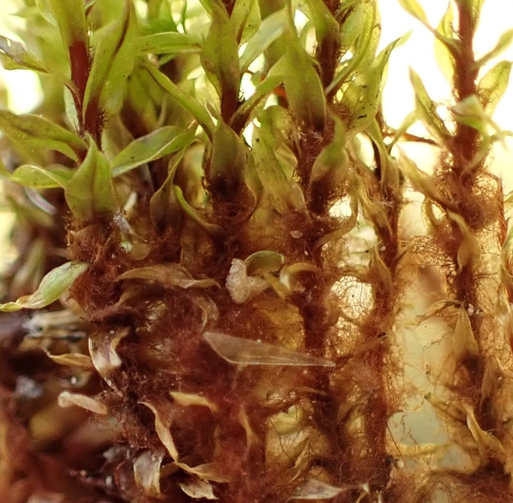 The always lovely moss species, Ptychostomum pseudotriquetrum, was perched on a few mounds around the edge of the pond. The red stems and red tomentum were outstanding.