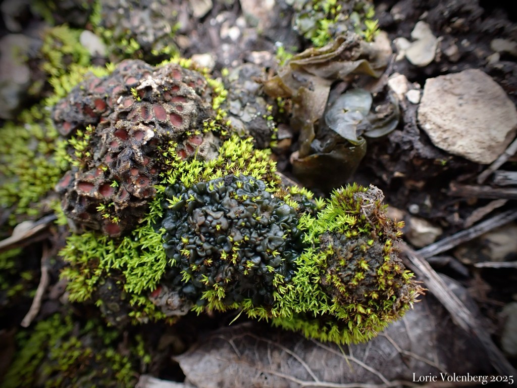 Biocrust is short for Biological Soil Crust. These crusts are a combination of fungi, bryophytes, lichen, algae, and cyanobacteria, that stabilize an amount of soil in usually arid and exposed locations. Glades are a prime place to find them, so my first stop was to look in a limestone/dolomite glade.