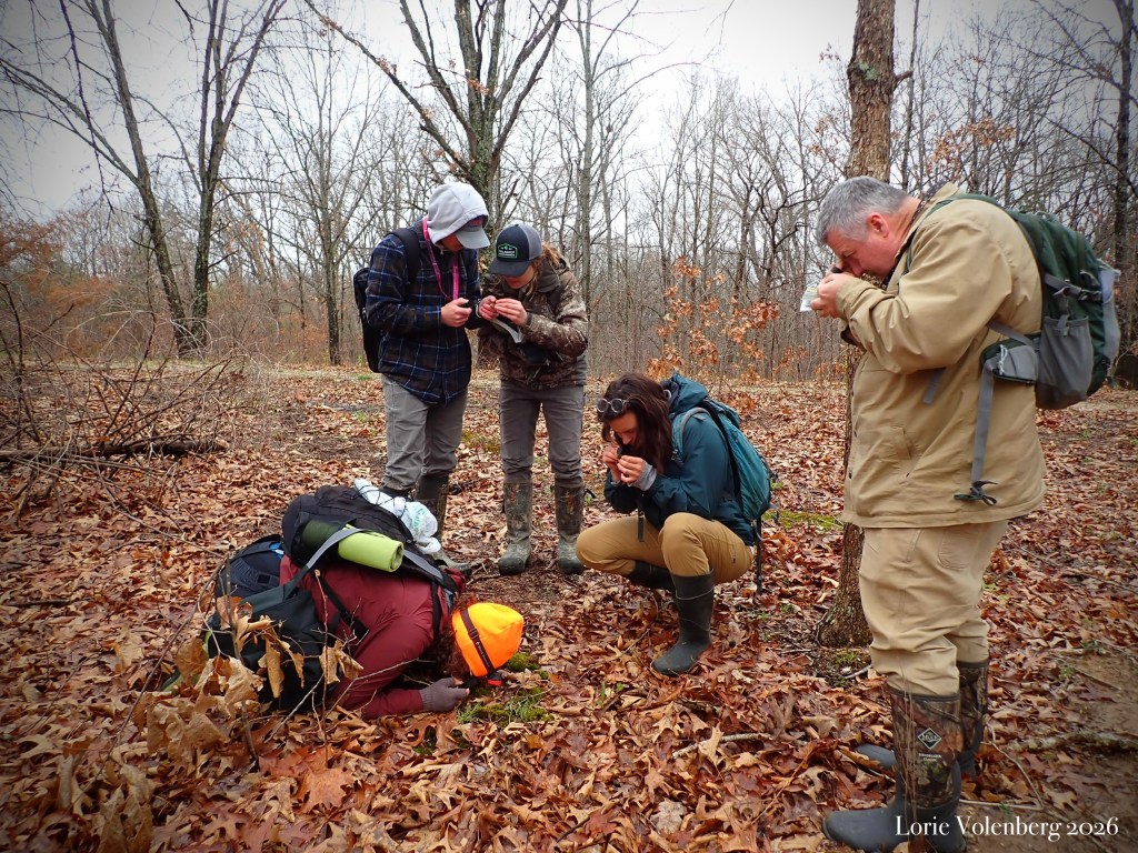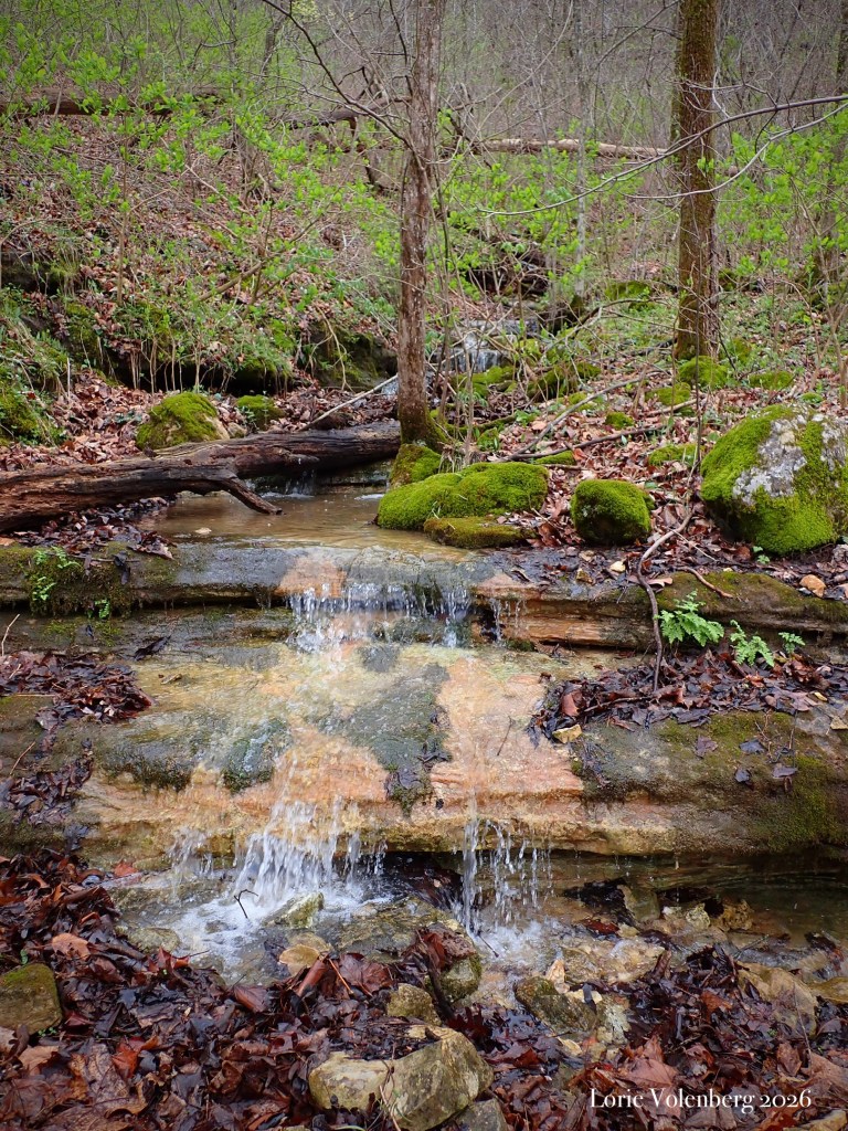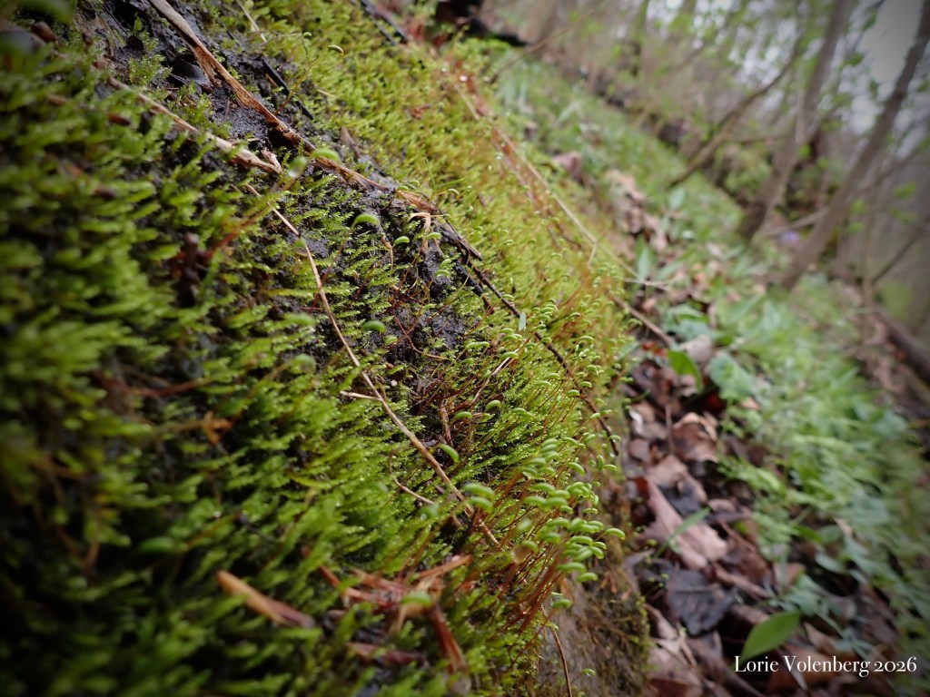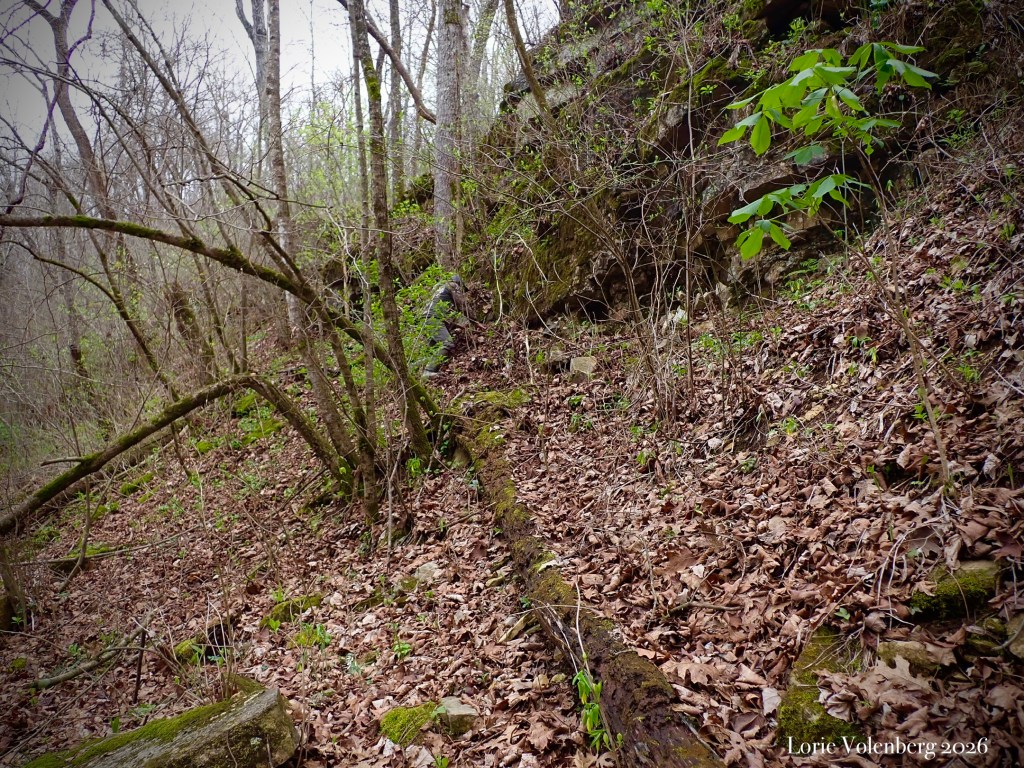 In early April 2026, 5 brave souls joined me on the bryophyte crawl at Little Lost Creek CA near Pendleton, MO. It had rained that week and the day before, so Little Lost Creek had quite a bit of water in it. The plan was to hike to the creek and to explore the creek’s edges, along with the hollows and ravines around it.