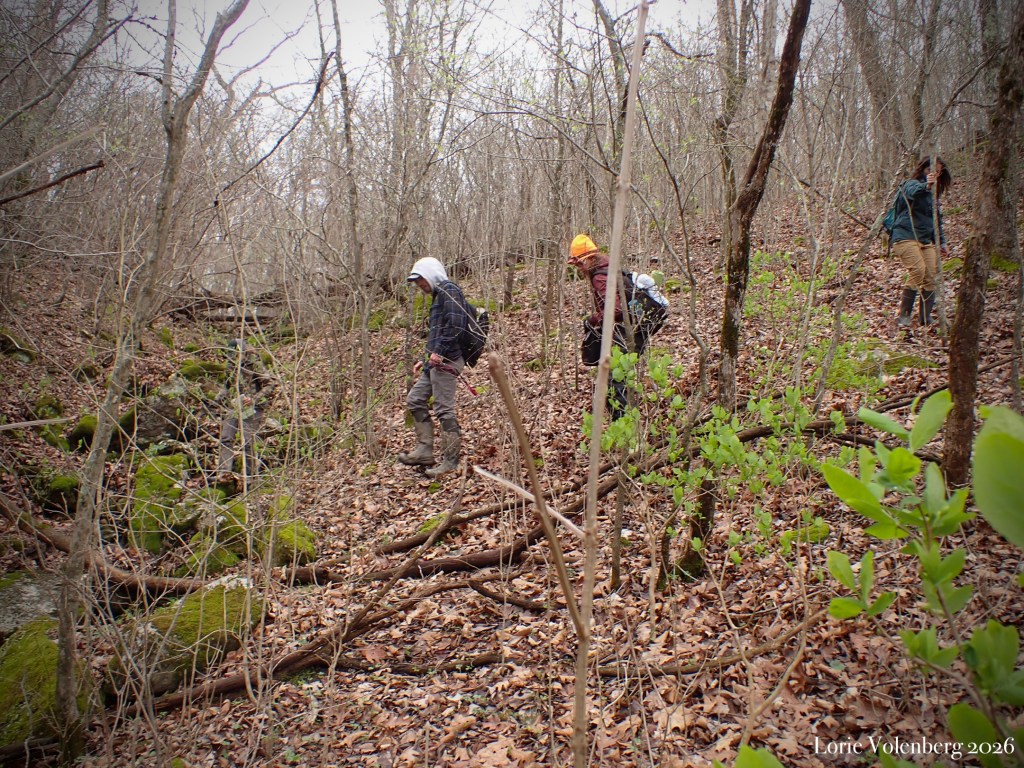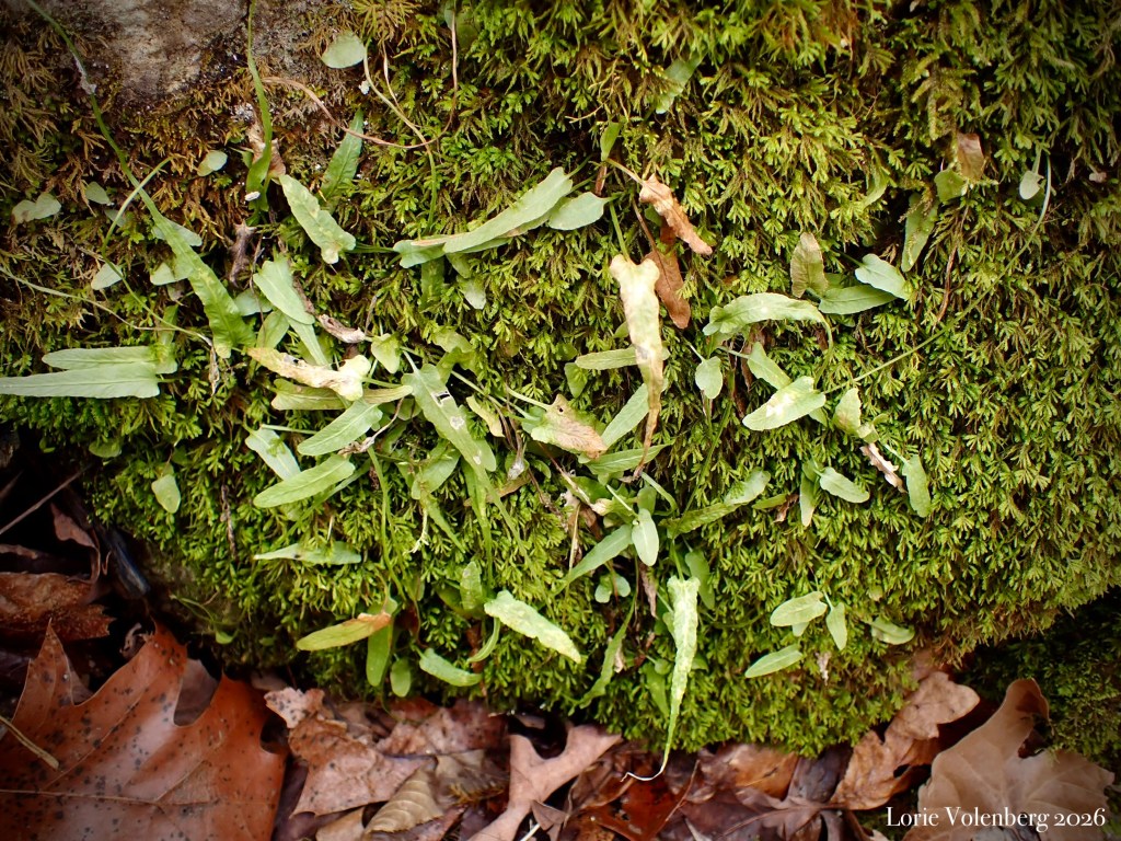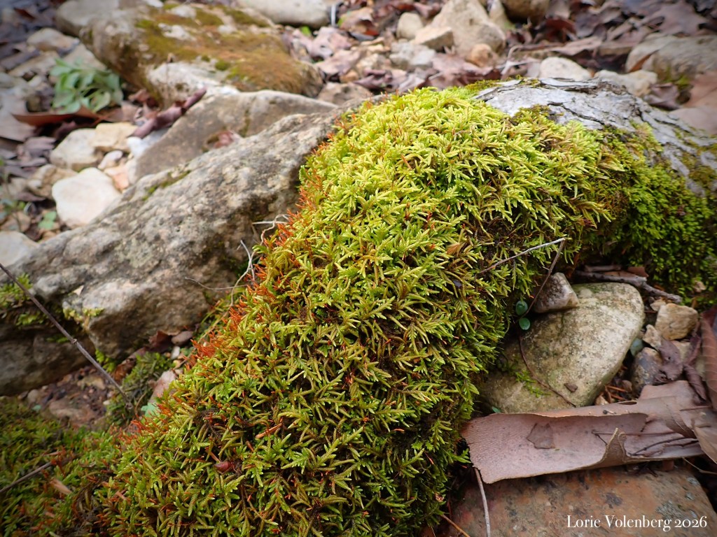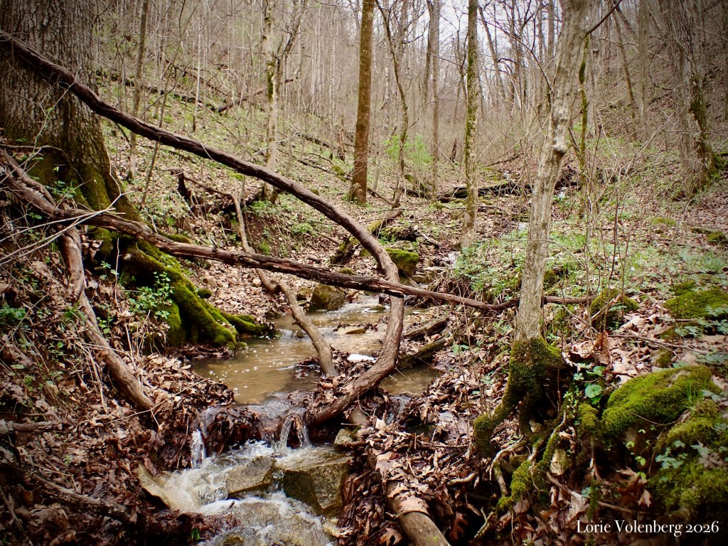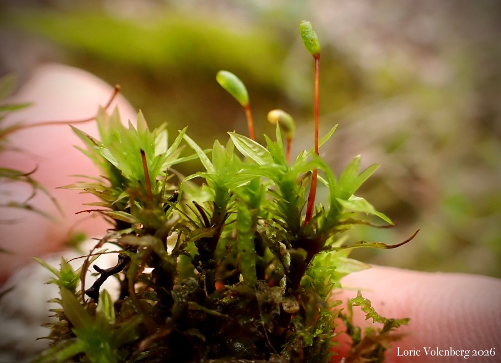 In early April 2026, 5 brave souls joined me on the bryophyte crawl at Little Lost Creek CA near Pendleton, MO. It had rained that week and the day before, so Little Lost Creek had quite a bit of water in it. The plan was to hike to the creek and to explore the creek’s edges, along with the hollows and ravines around it.