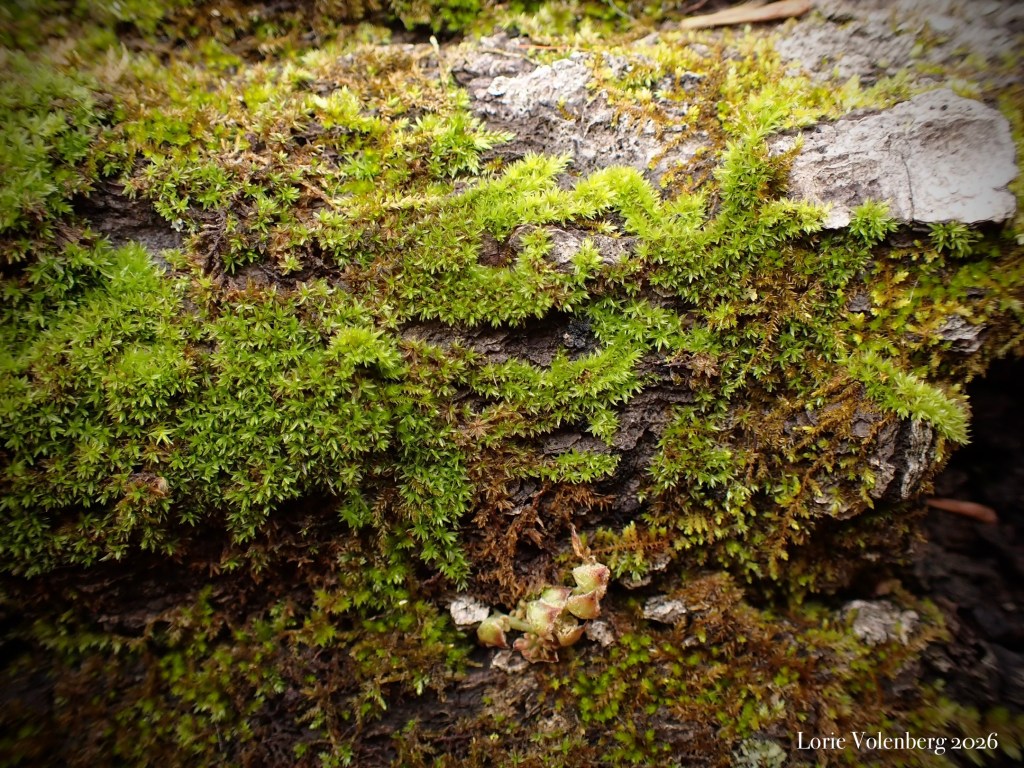 Other species found were Leucodon julacous, Drummondia prorepens, and Homomallium adnatum. Leucodon (bottom left) is primarily found on trees and will often look like a coat hook when dry. Drummondia (bottom middle) is fantastic in how the main stem crawls along the substrate and will send up upright shoots that alternate along the stem. Homomallium (bottom right), is the “oil spill” moss for rocks. It looks very similar to Platygyrium repens which is found commonly on decorticate wood.