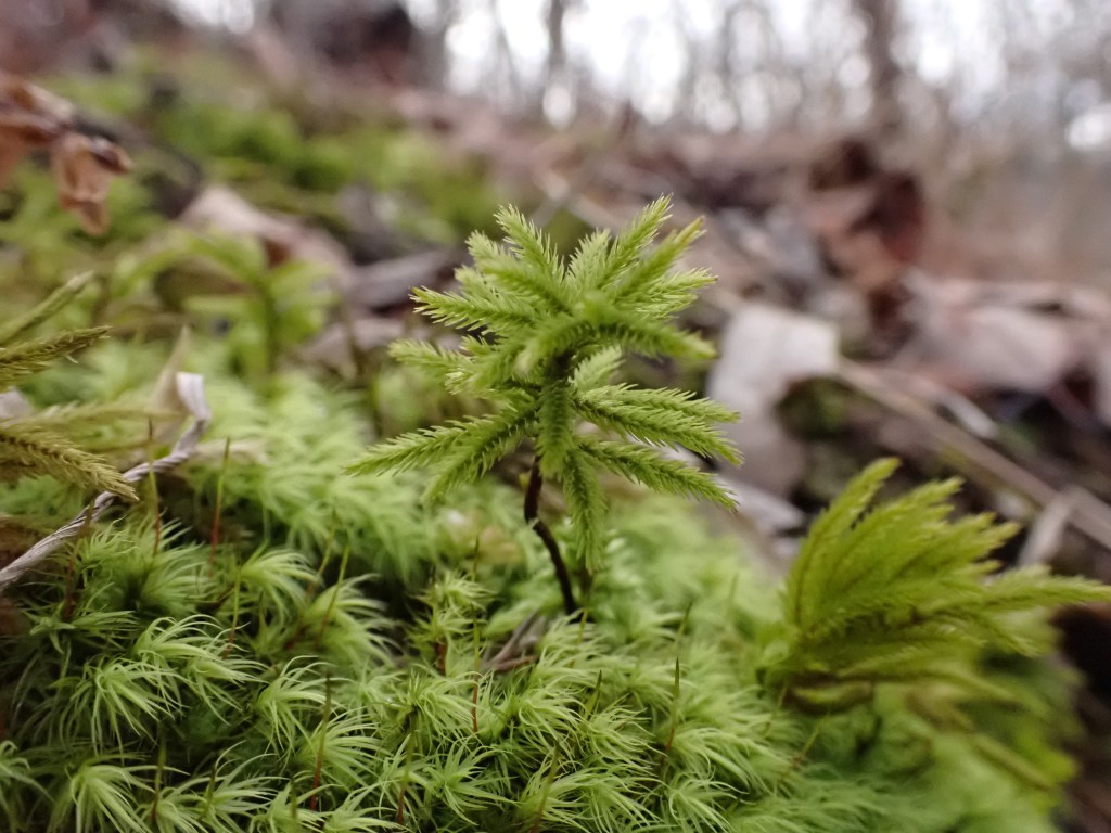 The common term bryophyte is referring to three divisions of plants: Mosses, Liverworts and Hornworts. Bryophytes are believed to be the most primitive land plants on earth as they are considered to be the bridge between aquatic algae and terrestrial vascular plants. After bryophytes colonized the land, the “higher” plant forms such as ferns, grasses, trees, and wildflowers evolved. They are called “higher” plant forms as they have a vascular system that allows for transport of nutrients.