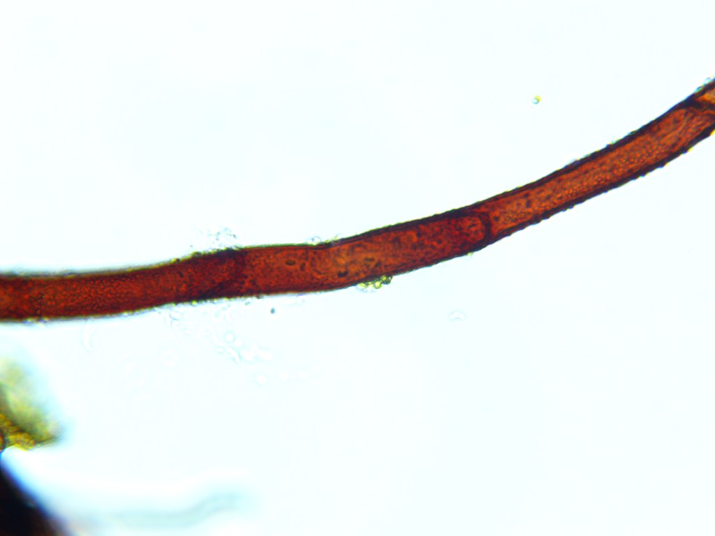 Rhizoids are multicellular but are only one cell wide. Their main function is to anchor the moss to its substrate. They can play a role in moving water to the stem. Rhizoids come in many colors from clear, to reds and browns, to even purple. They can be smooth, or they can be papillose. If rhizoids go up the stem and form a thick fuzz that covers the stem, they are called tomentum.