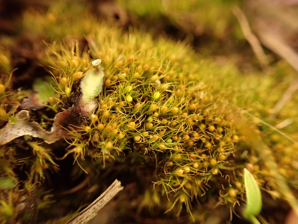 Gametophytes will eventually produce an antheridial head which is male, and an archegonial head which is female. The antheridial head contains the antheridium which produce the sperm, and the archegonial head contains the archegonium which produces an egg. Plants may be dioicous (separate male and female plants) or monoicous (male and female reproductive organs found on the same plant). Within the monoicous group there are many different arrangements such as synoicous (male and female parts found together in same reproductive head) and autoicous (male and female reproductive parts found in different locations). See my post here on rhizautoicous or nannandrous mosses.